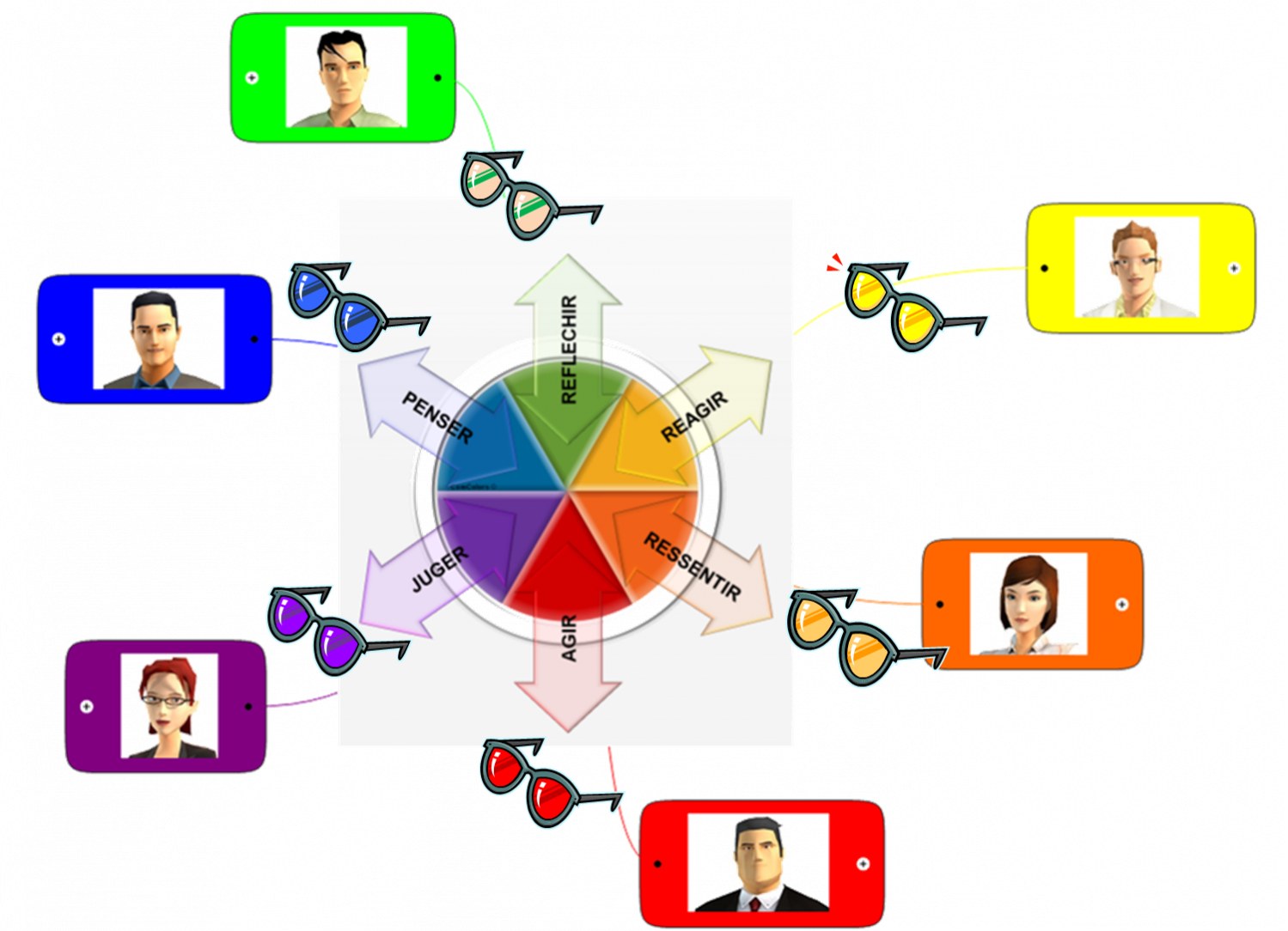 " Le modèle ComColors est basé sur 6 types de personnalités représentées par des couleurs. Notre personalité est composée de ces 6 couleurs avec un niveau d'énergie différents pour chacune d'elles...